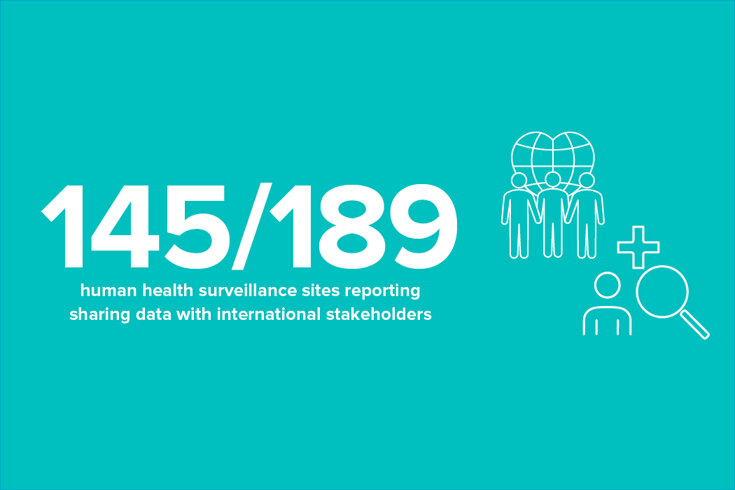 145 out of 189 human health surveillance sites reporting sharing data with international stakeholders