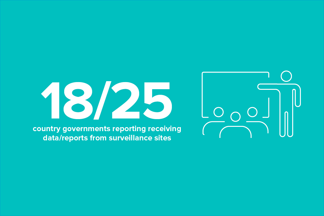 18 out of 25 country governments reporting receiving data/reports from surveillance sites
