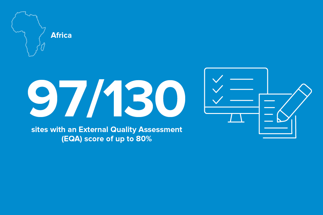 Africa: 97 out of 130 sites with an External Quality Assessment (EQA) score of up to 80%